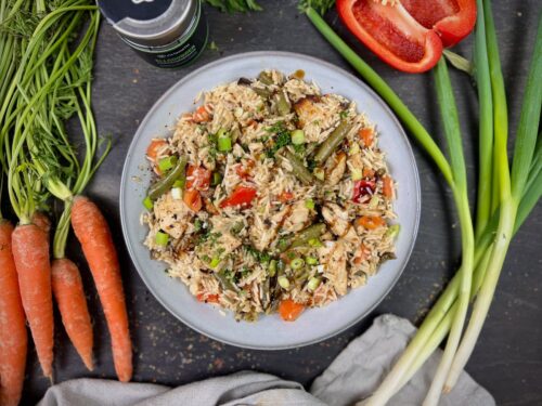 Hähnchen-Reispfanne aus der Heißluftfritteuse